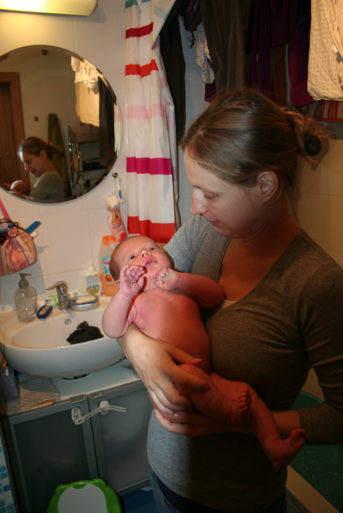 Így utólag, nem könnyítettem meg a segítőim helyzetét, hiszen egy négyzetméteren álltunk négyen, gyakorlatilag a férjem tartotta a súlyomat, pedig szinte nem is láttam őt. Ági bábatársa is megérkezett valamikor, de őt sem érzékeltem.