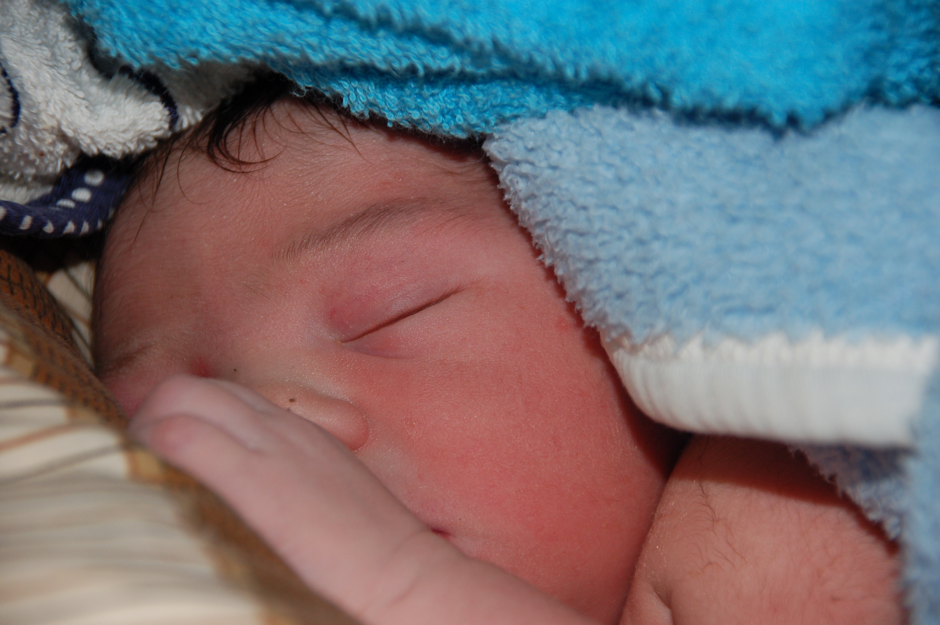 Remeg a lábam. Nagyon remeg a lábam. Fogjatok! Látszik a haja! Törölközök előkészítve! Még egy kicsi, és kint van! Jó-jó, értem, nem tudtok mást mondani, biztattok – gondolom magamban. De tényleg! Olyan szépen, olyan könnyen! Nem is látom, mert mögöttem van. Kati karjaiba érkezett, kissé integetve a kezével, a tiltott napon, fittyet hányva erre a bolond világra!