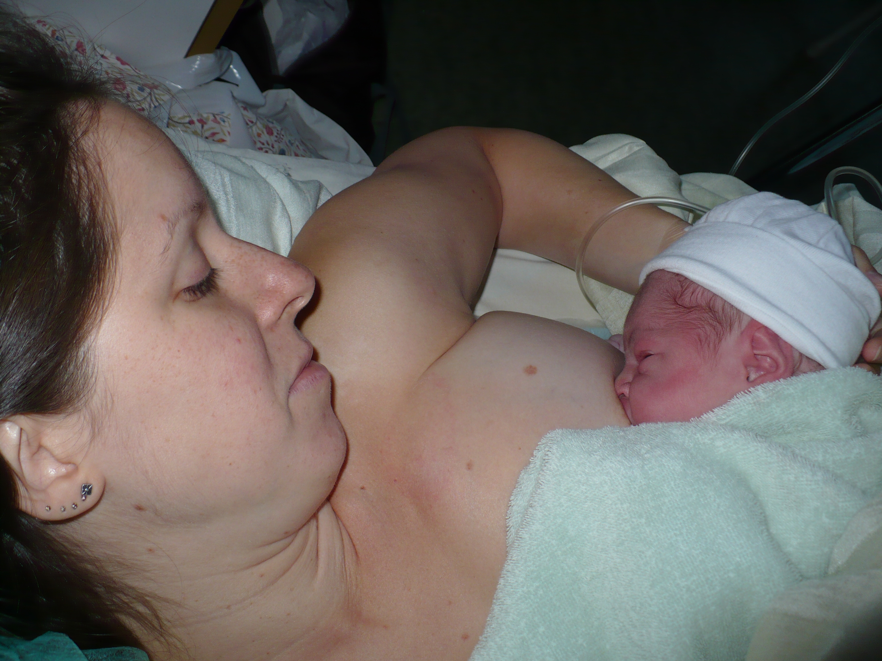 A kórteremben lefektetnek, betakarnak egy meleg takaróval. A doktornő és a szülésznő igyekeznek a lelkemet ápolni, nyugodjak meg, mindent megtettem, többet is… Közben már hozzák is Marcit, a szülésznőm rám teszi, Marci pedig rögtön rácuppan a cicire, és békésen szopizni kezd. A szülésznő figyeli, hogy valóban jól megy-e a szopizás, Marci nem hagy bennünk kétségeket, nem lesz gond.