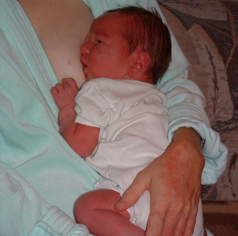 N. megkérte P-t, hogy segítsen neki, és feltérdelt. Karjával egy kicsit magasabbra, az ágy támlájára támaszkodott. A baba úgy ugrott ki, mintha a hal a vízből ugrana ki. P. jó reflexszel elkapta, de az ágyat bizony eléggé összevérezték, olyan gyorsan történt minden.