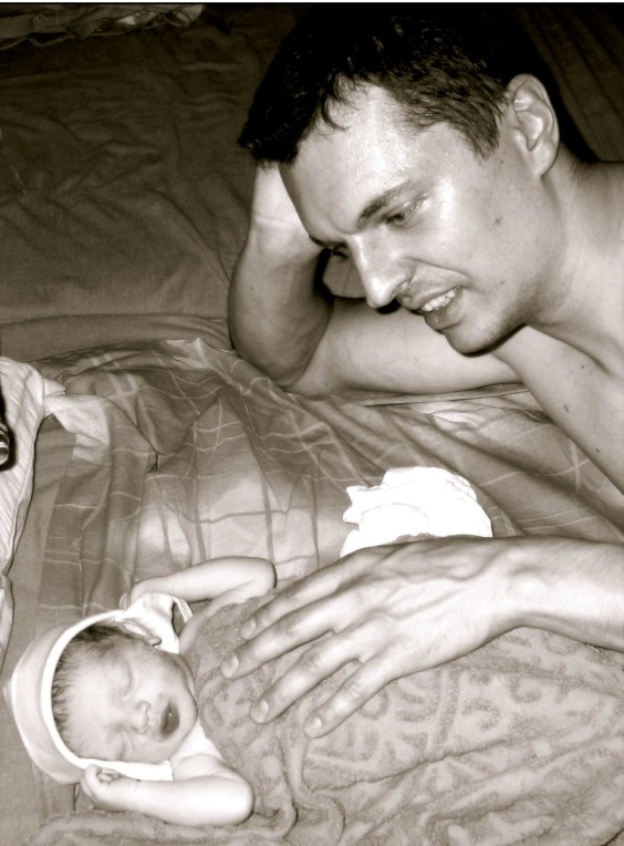 A bába és segítője hatra értek le hozzánk Veszprémbe. A vajúdás nehéz volt, de problémamentes. Voltunk kádban, ágyon oldalt fekve, járkálva, térdepelve. Ahogy Anyának éppen jó volt.